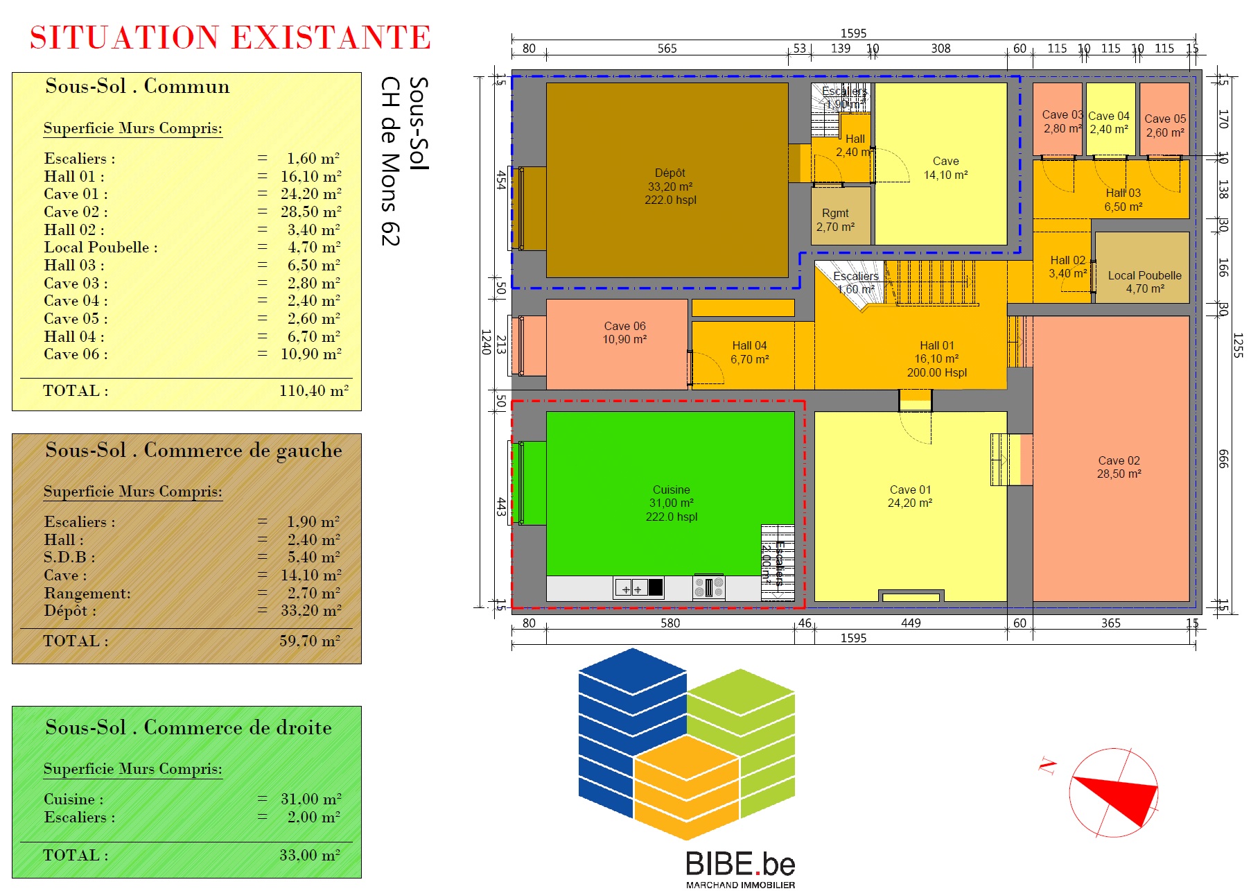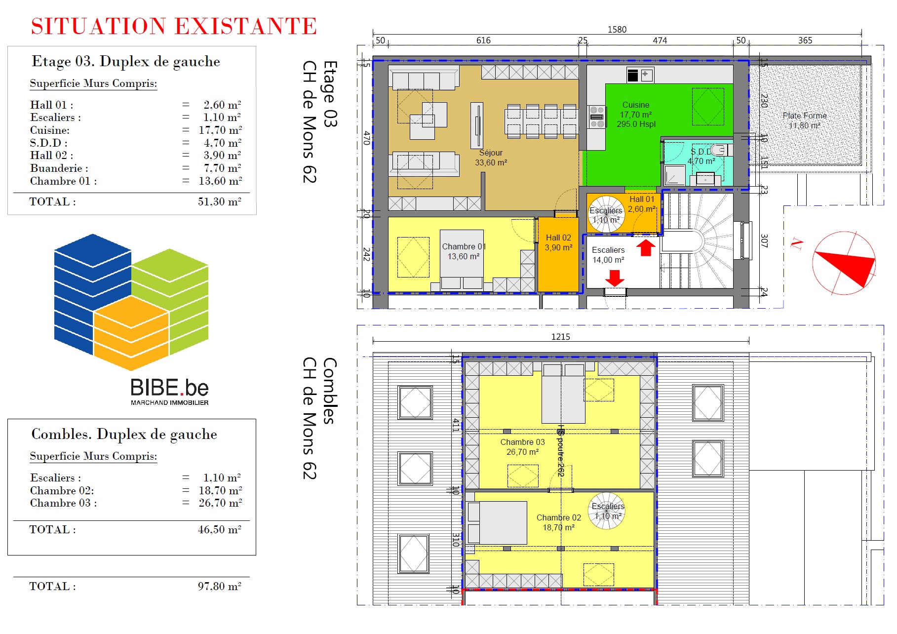 A saisir pour les plus rapides dans un immeuble sans charge , situation centrale, à proximité des commerces , écoles et transports . un Duplex de 97.80 m² de 3 chambres situé au 3ieme étage Gauche + 1 cave comprise dans le prix . Possibilité de créer une terrasse de 11 m2 orientation Sud Est moyennant permis ( facile à obtenir car sortie de secours en cas d'incendie, il faudra mettre des panneaux d'1m90 sur tout le pourtour) . - Visite virtuelle 360° , 3D , https://drawbotics.floorplanner.com/projects/95628471-duplex-gauche-mons-62/spaceplanner Plans téléchargeables sur www.bibe.be.
