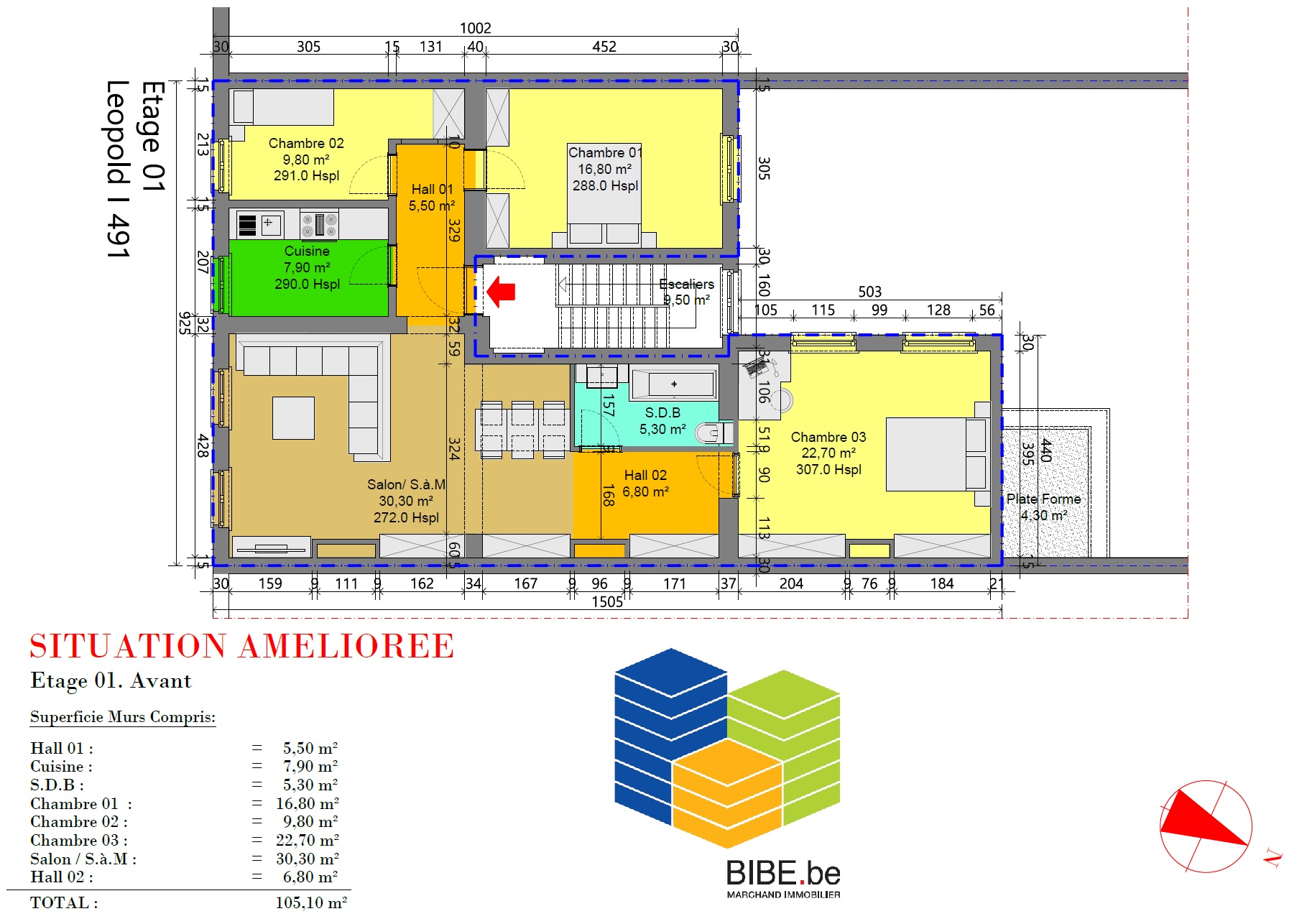 | Surface habitable | 105,1 m² |