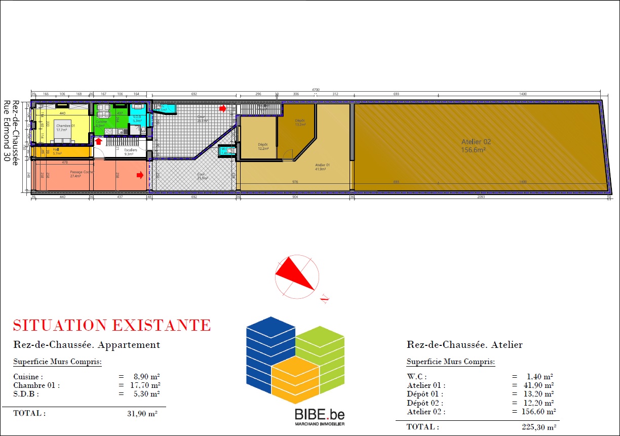 INSCRIPTIONS VISITES UNIQUEMENT VIA LE LIEN SUIVANT: https://www.bibe.be/fr-BE/Details/Index/5243663 . A saisir pour les plus rapides, Un ensemble immobilier constitué de 2 bâtiments arrières dans un immeuble sans charge , Idéalement situé à proximité du centre commercial de Molenbeek , des transports publics et écoles . Un total de 372,70 m² . Le premier bâtiment est un atelier arrière occupé en 1 logement duplex non reconnu par l'urbanisme ( 1ier + 2ième étage ) + cour de 23,50 m² . Le deuxième bâtiment arrière est un atelier de 198,50 m² avec cour couverte reglementaire .