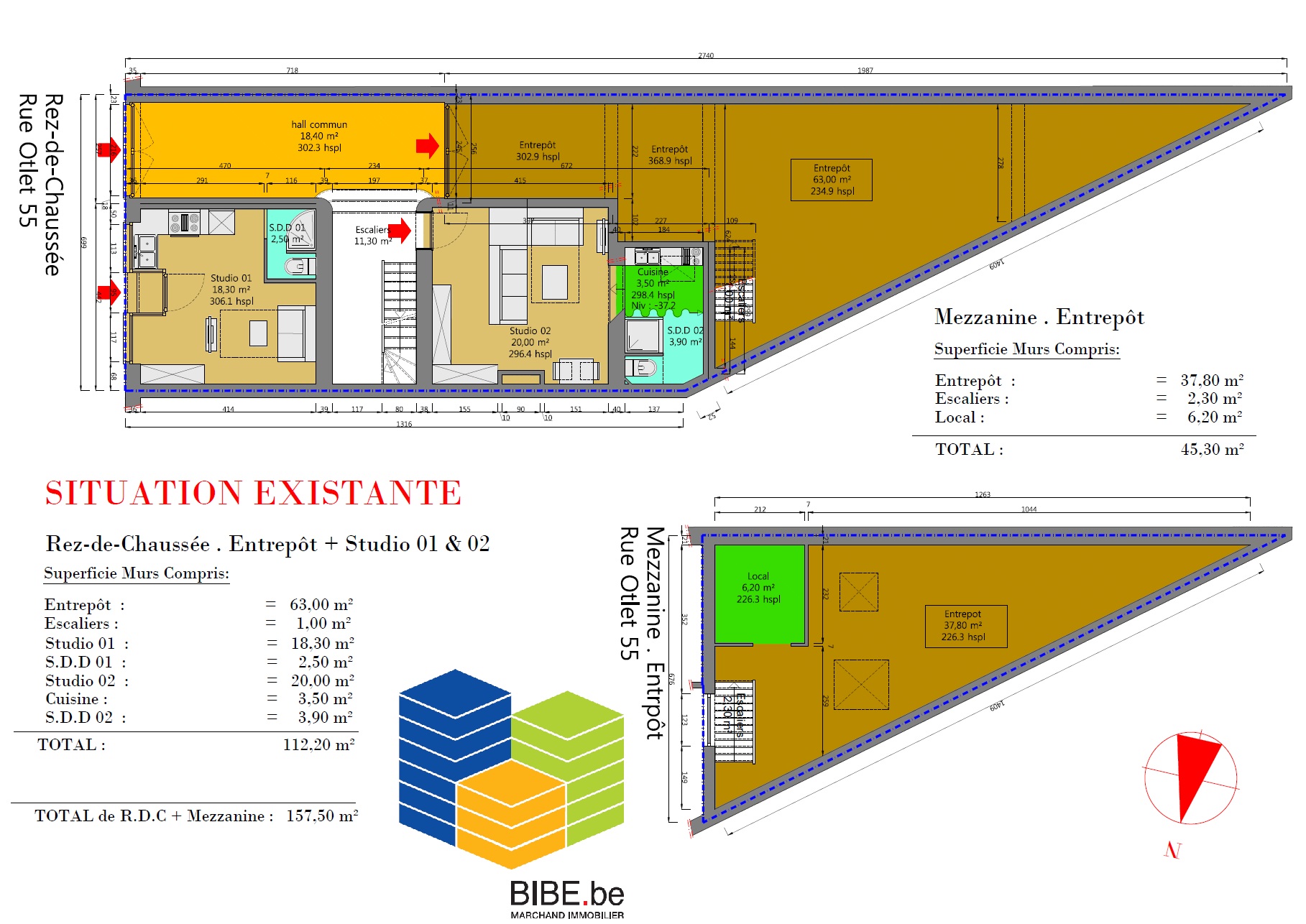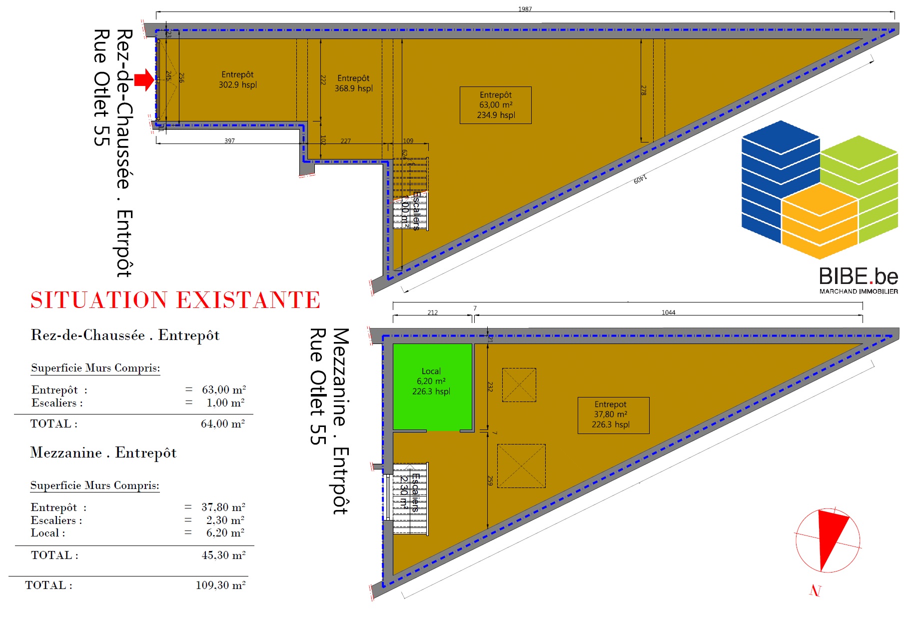 INSCRIPTIONS VISITES UNIQUEMENT VIA LE LIEN SUIVANT : www.bibe.be/fr-BE/Details/Index/5255498 , A saisir Atelier/entrepôt arrière de 109,30 m² sur 2 niveaux ( 64,00 m² + 45,30 m² ) . Situé à 400 mètres du métro Clémenceau, dans le quartier du triangle .