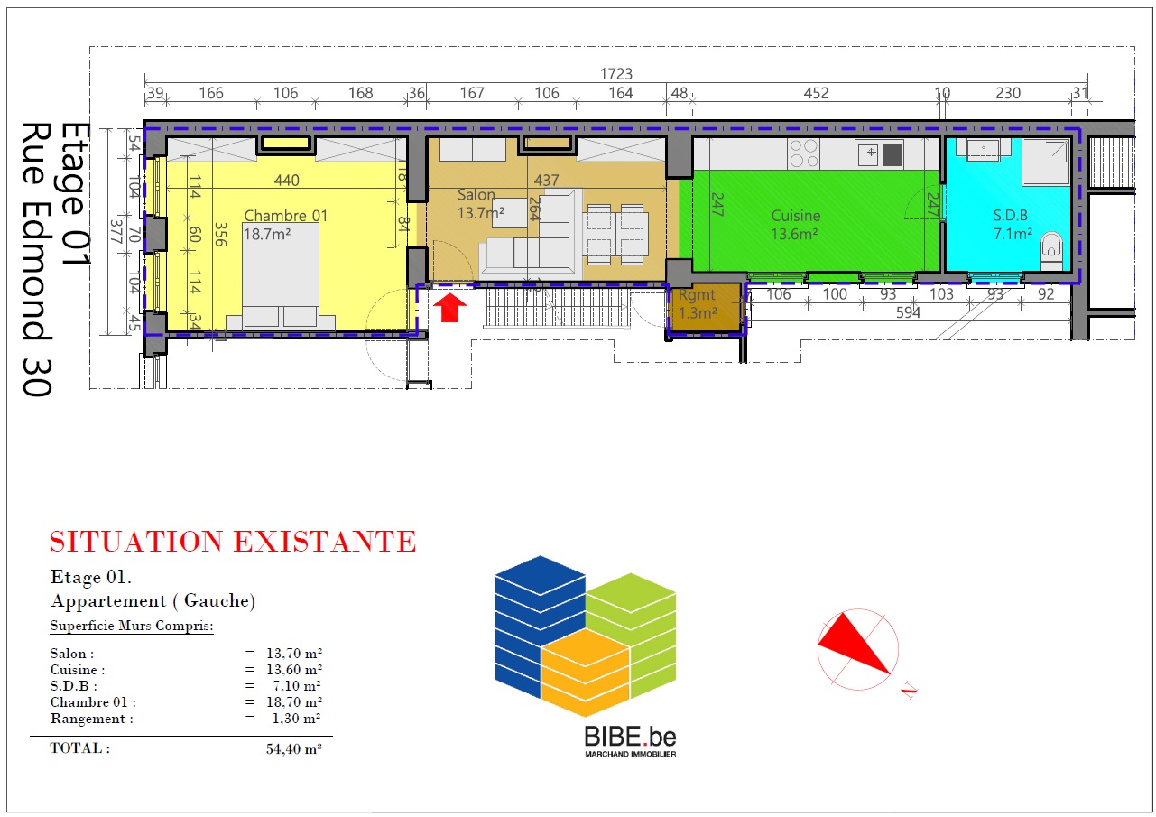 INSCRIPTIONS VISITES UNIQUEMENT VIA LE LIEN SUIVANT : https://www.bibe.be/fr-BE/Details/Index/5314497 , A saisir pour les plus rapides dans un immeuble sans charge , Idéalement situé à proximité du centre commercial de Molenbeek , des transports publics. Appartement au 1ier étage de 88,50 m² . Actuellement le bien est occupé en 1 appartement 1 chambre de 54m² + 1 studio de 34 m² - Plans téléchargeables sur www.bibe.be 3D: