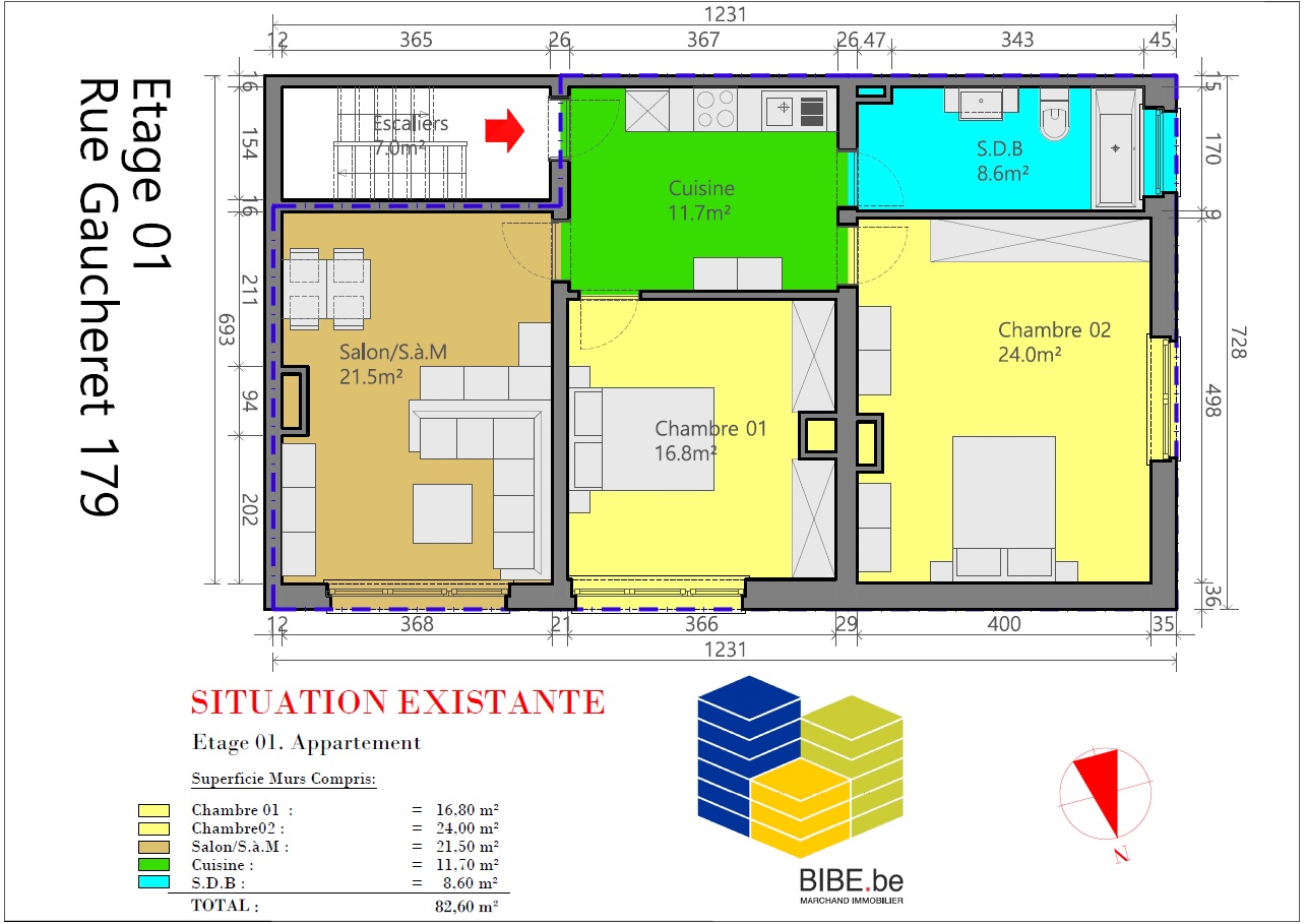 INSCRIPTIONS VISITES UNIQUEMENT VIA LE LIEN SUIVANT : https://www.bibe.be/fr-BE/Details/Index/5392513 Dans un immeuble sans charge , A saisir Atelier situé au 1ier étage arrière , actuellement occupé en 1 appartement 2 chambres . Situation centrale, situé à 300 mètres du quartier d'Affaires Manhattan ( Tours Proximus,...) entre la gare du Nord et le canal, à proximité immédiate des commerces, des écoles, des transports en commun (métro, tram et bus) et du parc Gaucheret. - Plans téléchargeables sur www.bibe.be 3D: