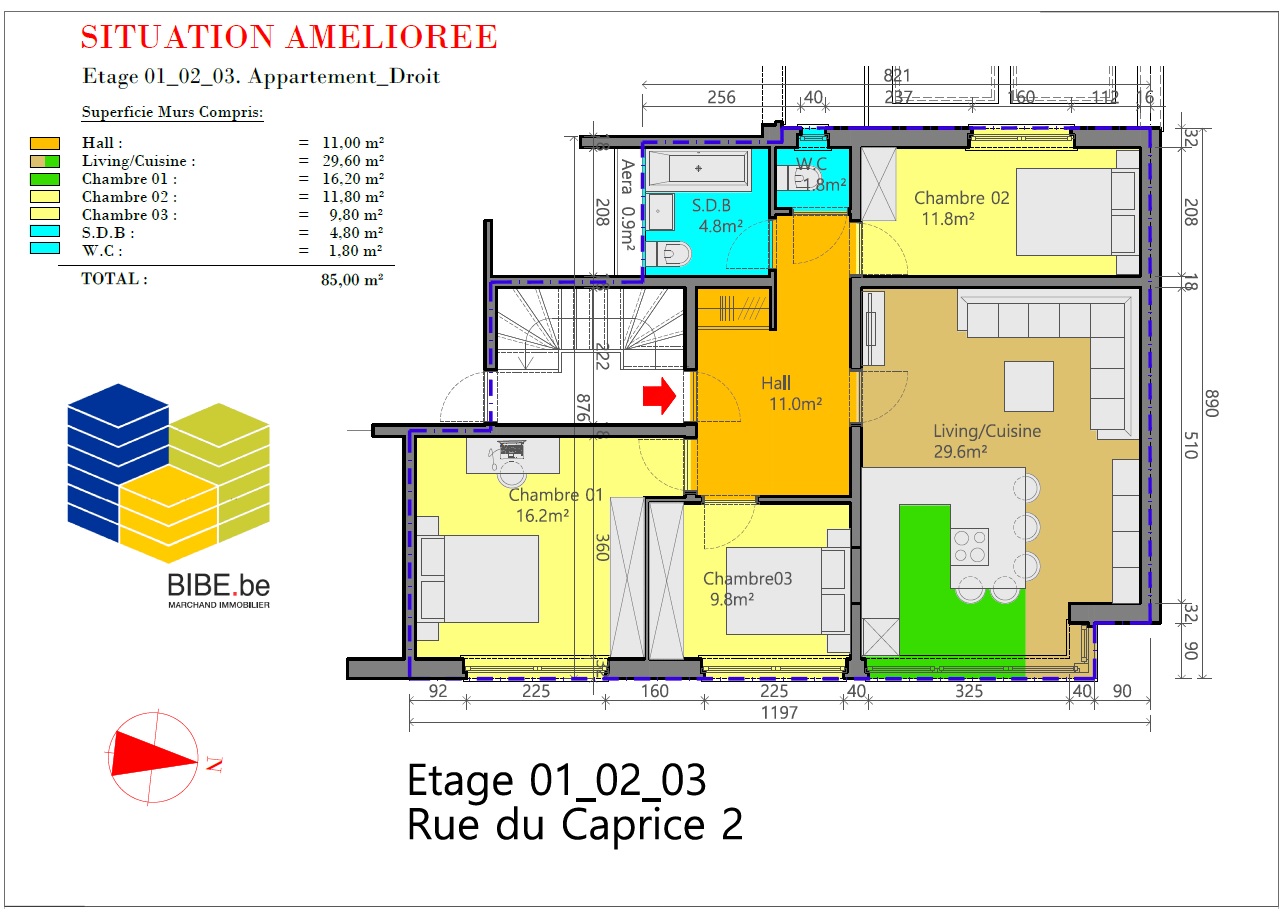 INSCRIPTIONS VISITES UNIQUEMENT VIA LE LIEN SUIVANT : https://www.bibe.be/fr-BE/Details/Index/5594680 A saisir appartement libre d'occupation de 2 à 3 chambres situé au 2ième étage Droit . Plan situation existante + plan situation améliorée en 3 chambres en déplaçant la cuisine dans le séjour . NOUVELLE FACADE ARRIERE ISOLEE EN 2023 + NOUVELLE TOITURE 2023 . INCLUS DANS LE PRIX 1 CAVE DE 4,9M² . Situation idéale proche du Ring , à proximité immédiate des commerces, des écoles, des transports en commun - Plans téléchargeables sur www.bibe.be 3D: