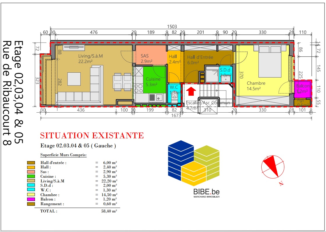 INSCRIPTIONS VISITES UNIQUEMENT VIA LE LIEN SUIVANT : https://www.bibe.be/fr-BE/Details/Index/5873976 . A saisir un appartement de 58m² . Situation idéale au centre de Molenbeek-Saint-Jean, à proximité immédiate des commerces, à 250 mètres du Métro Comte de Flandre et à moins de 350 mètres du Métro Ribaucourt , des écoles, des transports en commun - Plans téléchargeables sur www.bibe.be 3D: