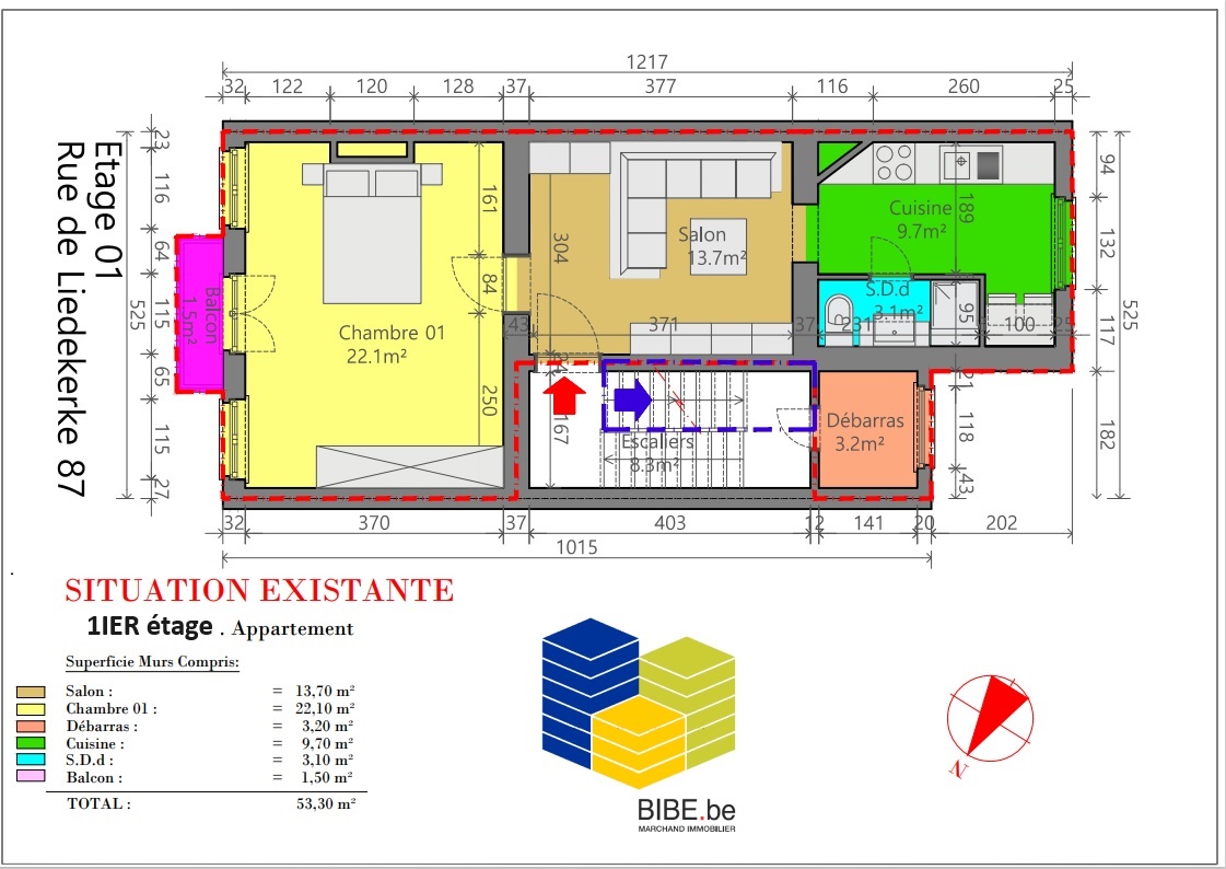INSCRIPTIONS VISITES UNIQUEMENT VIA LE LIEN SUIVANT: https://www.bibe.be/fr-BE/Details/Index/5918636 , A 350 m de la place Saint-Josse, dans un immeuble sans charge, appartement situé au 1ier étage d'une superficie de +/- 53,30 m² avec balcon de 1,5 m²