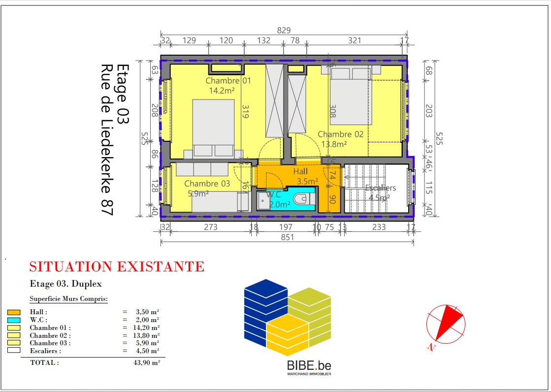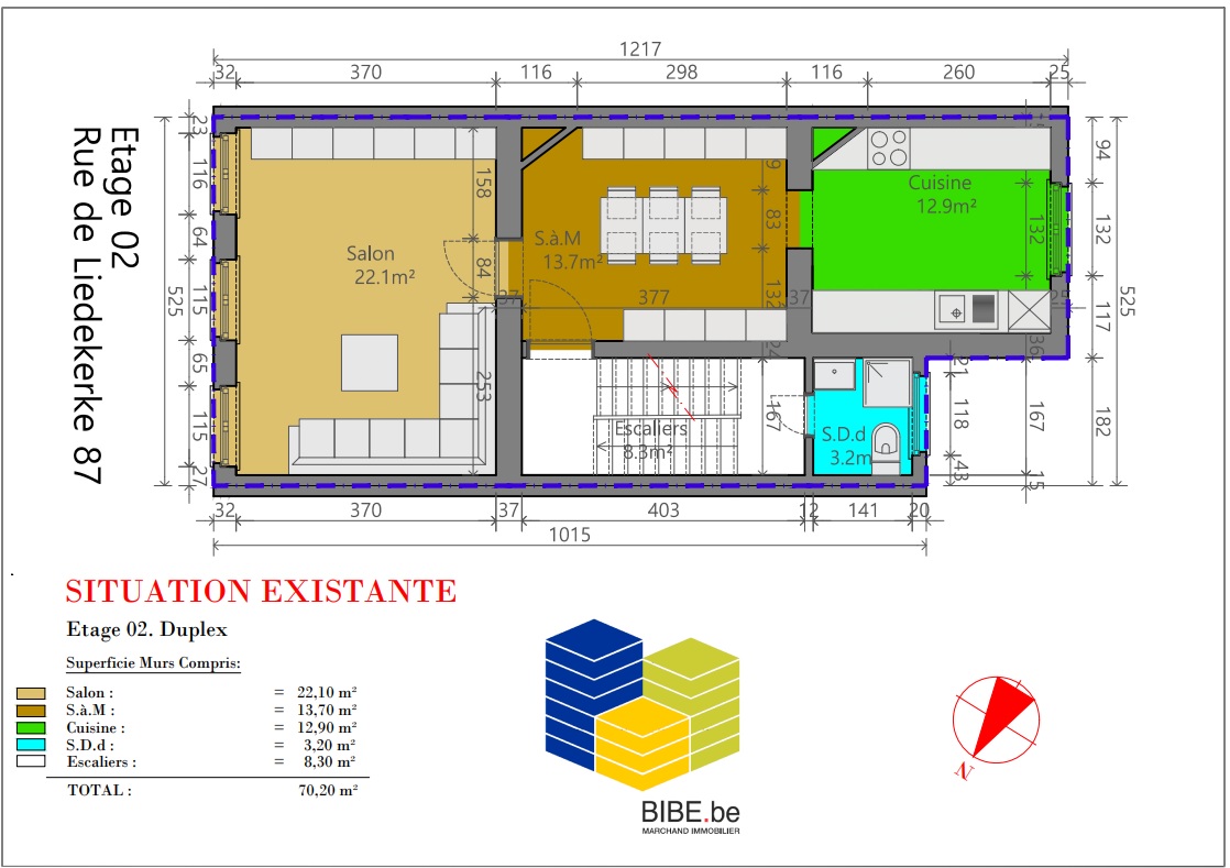 INSCRIPTIONS VISITES UNIQUEMENT VIA LE LIEN SUIVANT: https://www.bibe.be/fr-BE/Details/Index/5918637 , A 350 m de la place Saint-Josse, dans un immeuble sans charge, appartement duplex situé au 2ième étage d'une superficie de +/- 104,10 m²