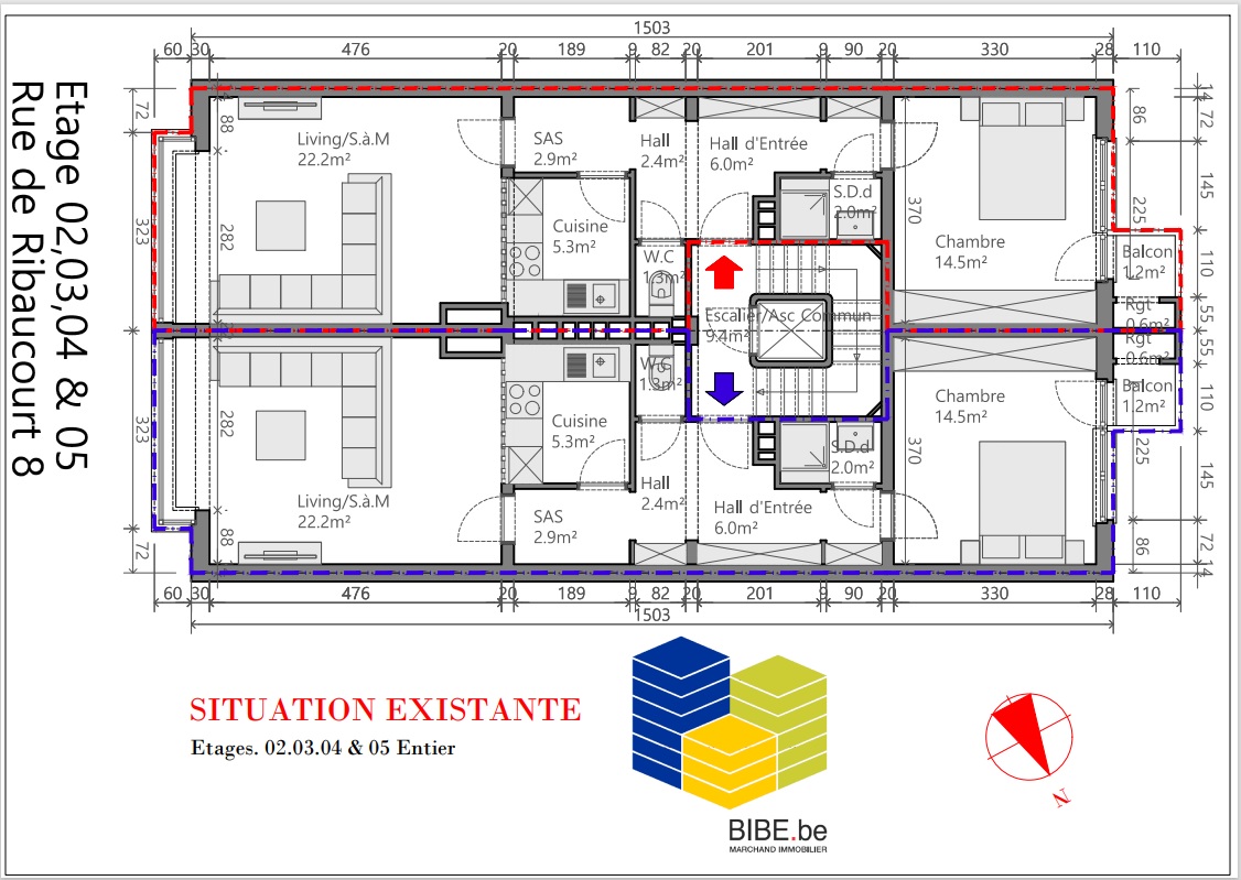 INSCRIPTIONS VISITES UNIQUEMENT VIA LE LIEN SUIVANT : https://www.bibe.be/fr-BE/Details/Index/6008506 . A saisir un appartement 3 chambres de 116m² . Electricité OK . Actuellement appartement reconnu en 2 appartements de 58m2 chacun. Possibilité d'acheter plusieurs étages ( étages 2,4 et 5 ) ou d'acheter appartement de 58 m² droite ou gauche à 125.000 €/unité . Situation idéale au centre de Molenbeek-Saint-Jean, à proximité immédiate des commerces, à 250 mètres du Métro Comte de Flandre et à moins de 350 mètres du Métro Ribaucourt , des écoles, des transports en commun - Plans téléchargeables sur www.bibe.be 3D: